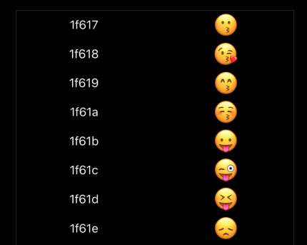 1 2 3 4 5 6 7 8 9 10 11 12 13 14 15 16 17 18 19 20 struct VerticalSmileys: View { let columns = [GridItem(.flexible()), GridItem(.flexible())] var body: some View { ScrollView { LazyVGrid(columns: columns) { ForEach(0x1f600...0x1f679, id: \.self) { value in Text(String(format: "%x", value)) Text(emoji(value)) .font(.largeTitle) } } } } private func emoji(_ value: Int) -> String { guard let scalar = UnicodeScalar(value) else { return "?" } return String(Character(scalar)) } }