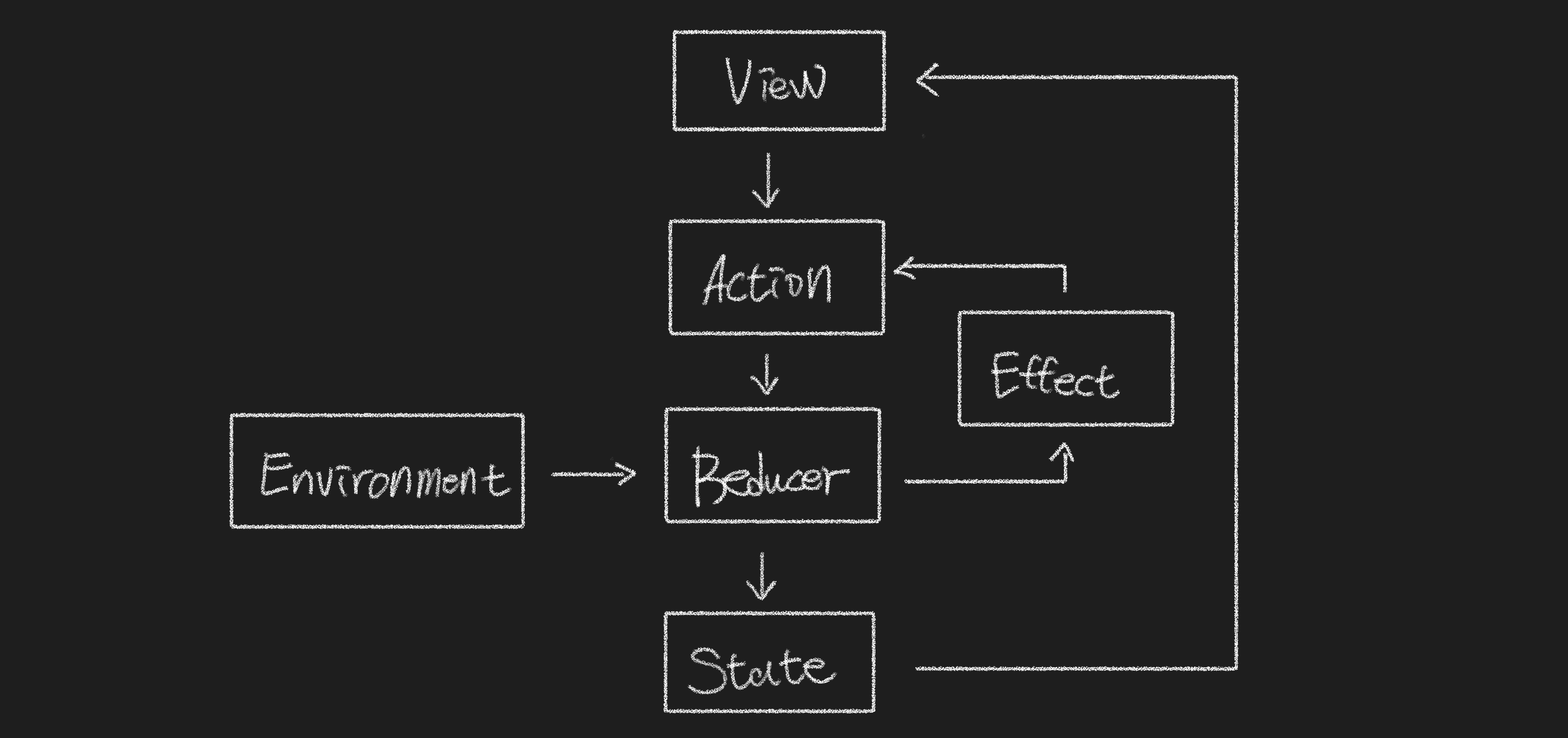 TCA는 State를 관리하여 효율적으로 View의 변화를 관리할 수 있는 아키텍처이다. 이 아키텍처의 데이터 흐름을 보면 SwiftUI 프레임 워크에 적합하다는 사실을 알 수 있다.