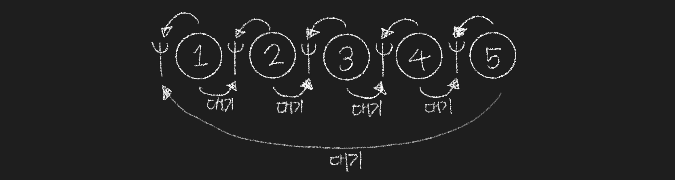 - 한 명 이상의 철학자가 둥근 테이블에 앉아 다음과 같은 세 행동 중 하나를 취한다. (식사, 생각, 수면)